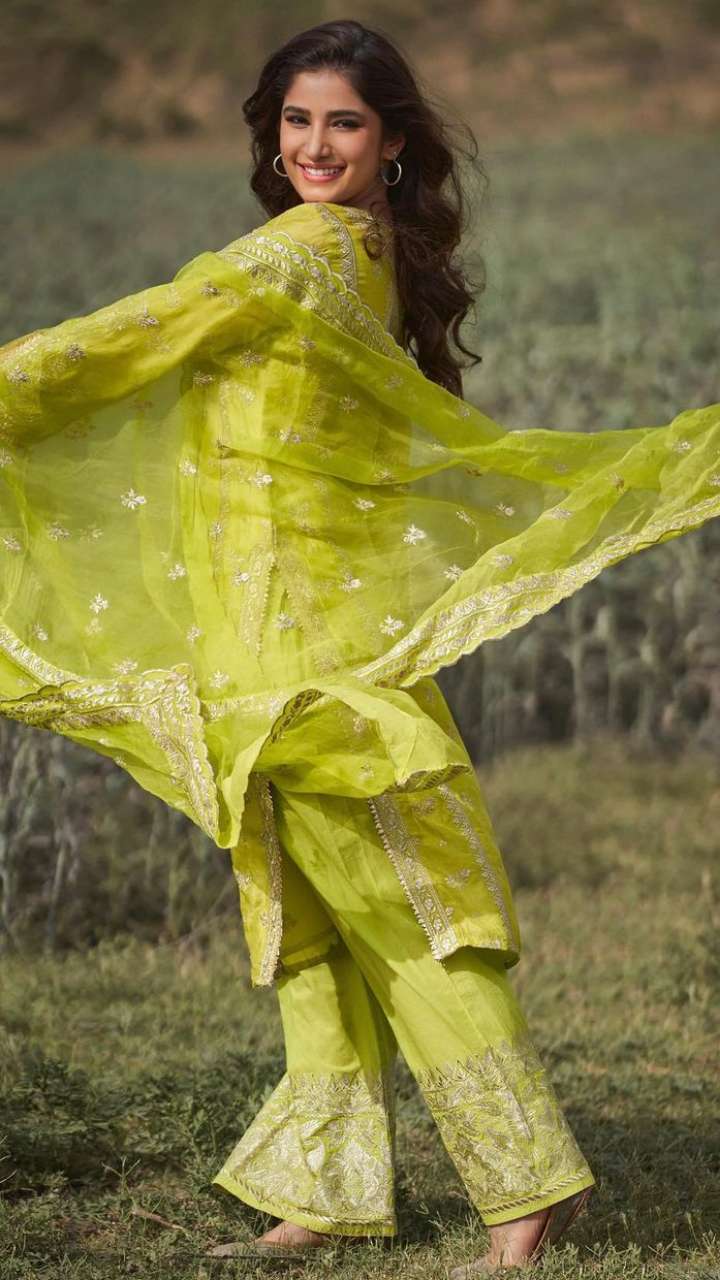 एक्ट्रेस इस पॉली कैमब्रिक पेंट सेट में बेहद क्लासी लुक दे रही हैं।
