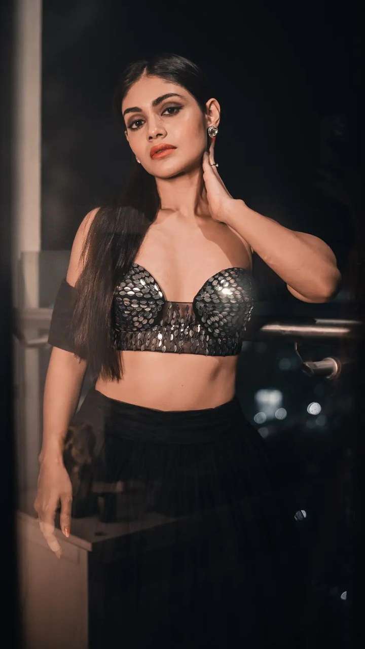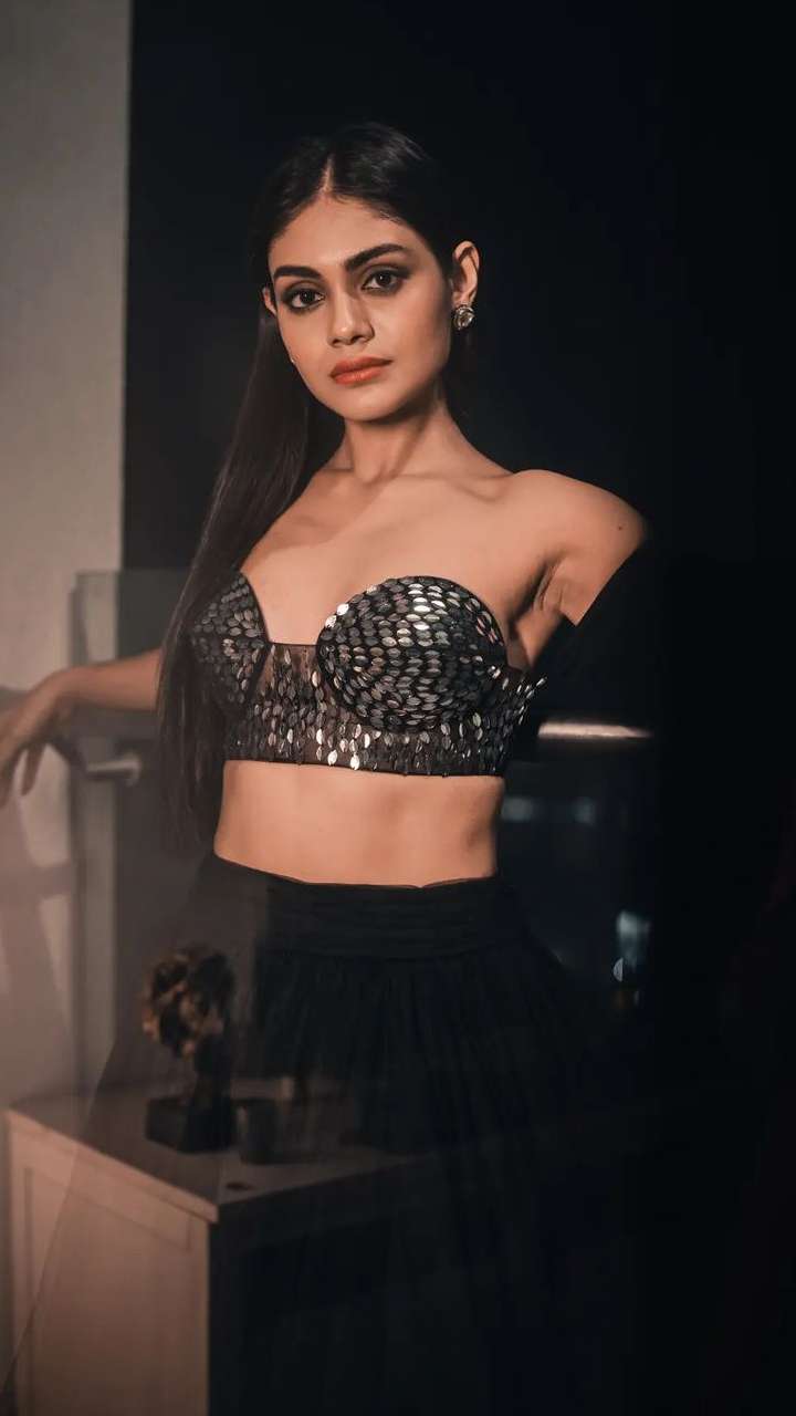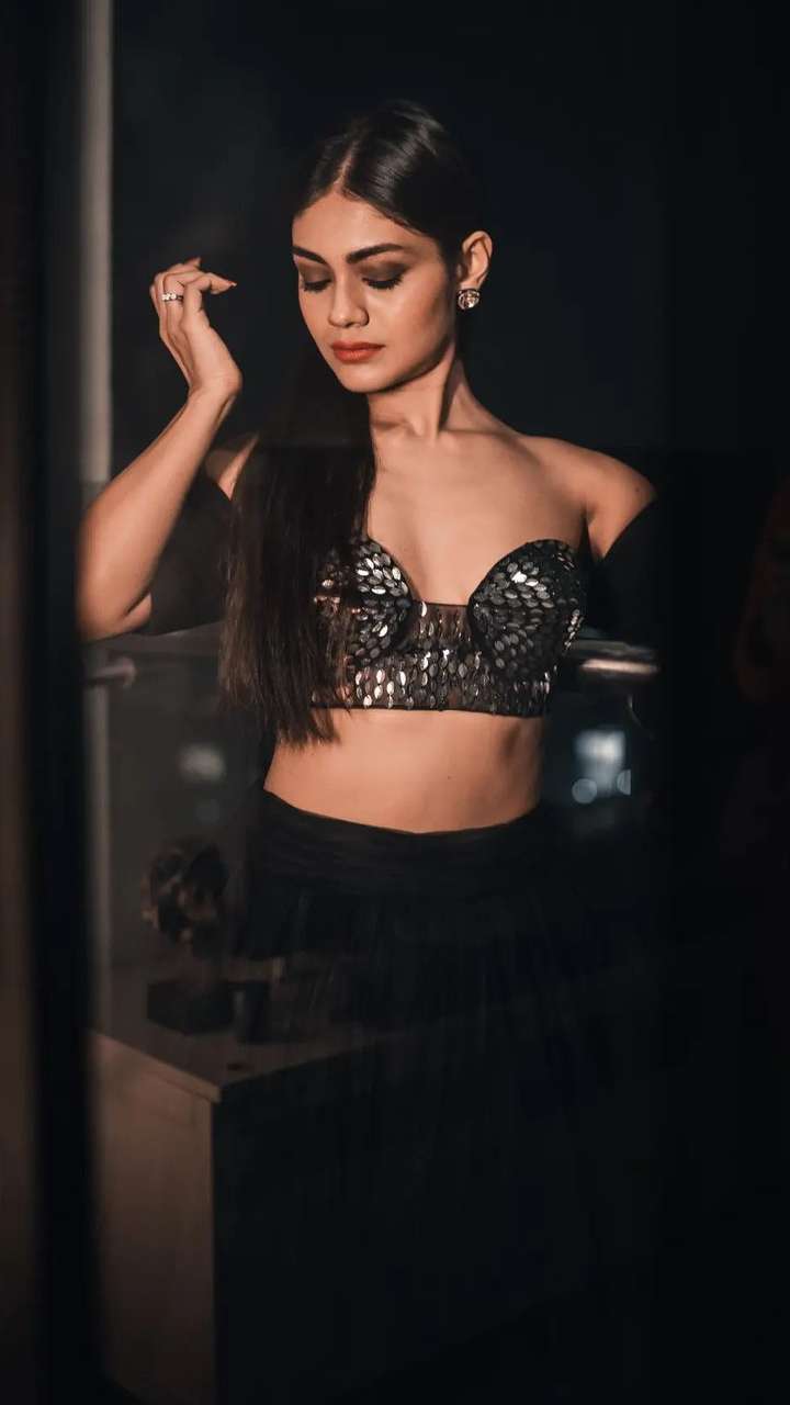 बिग बॉस कंटेस्टेंट श्रीजिता डे ब्लैक ब्रालेट और स्कर्ट पहने बेहद ही ग्लैमरस दिख रही हैं।