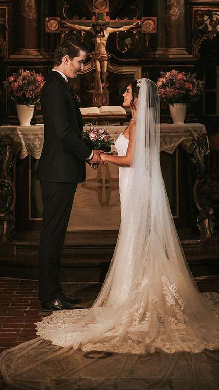 वेडिंग पर एक्ट्रेस ने ब्यूटीफुल व्हाइट गाउन कैरी की है, जिसमें वो बेहद खूबसूरत लग रहीं हैं।