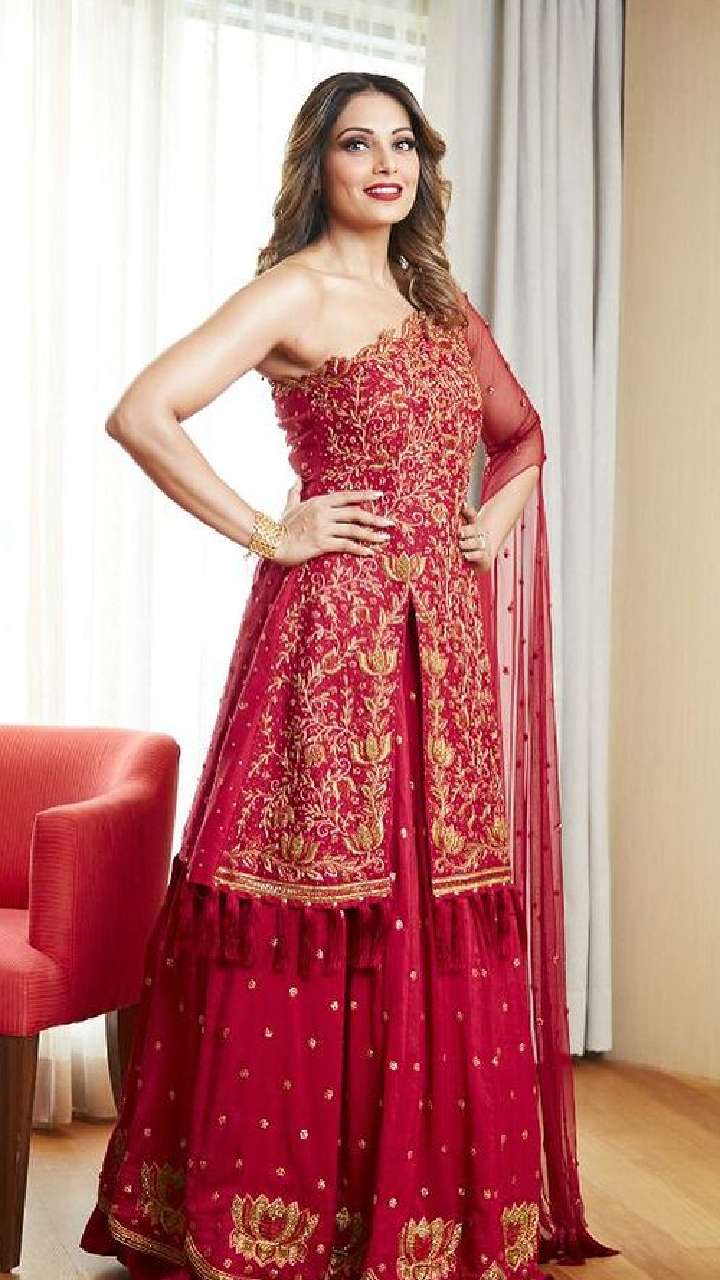 बिपाशा का ये हेवी वर्क लहंगा किसी को भी रॉयल लुक देगा।