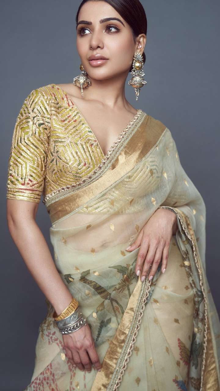 पार्टी या फंक्शन में ब्रेस्ट और आउटफिट्स को गॉर्जियस लुक देने के लिए एक्ट्रेस Samantha Ruth Prabhu के ब्लाउज डिजाइन को ट्राई करें। फैशन से जुड़ी हर अपडेट के लिए बनें रहें JAGRAN.COM के साथ। Image Credit: Instagram (@samantharuthprabhuoffl)