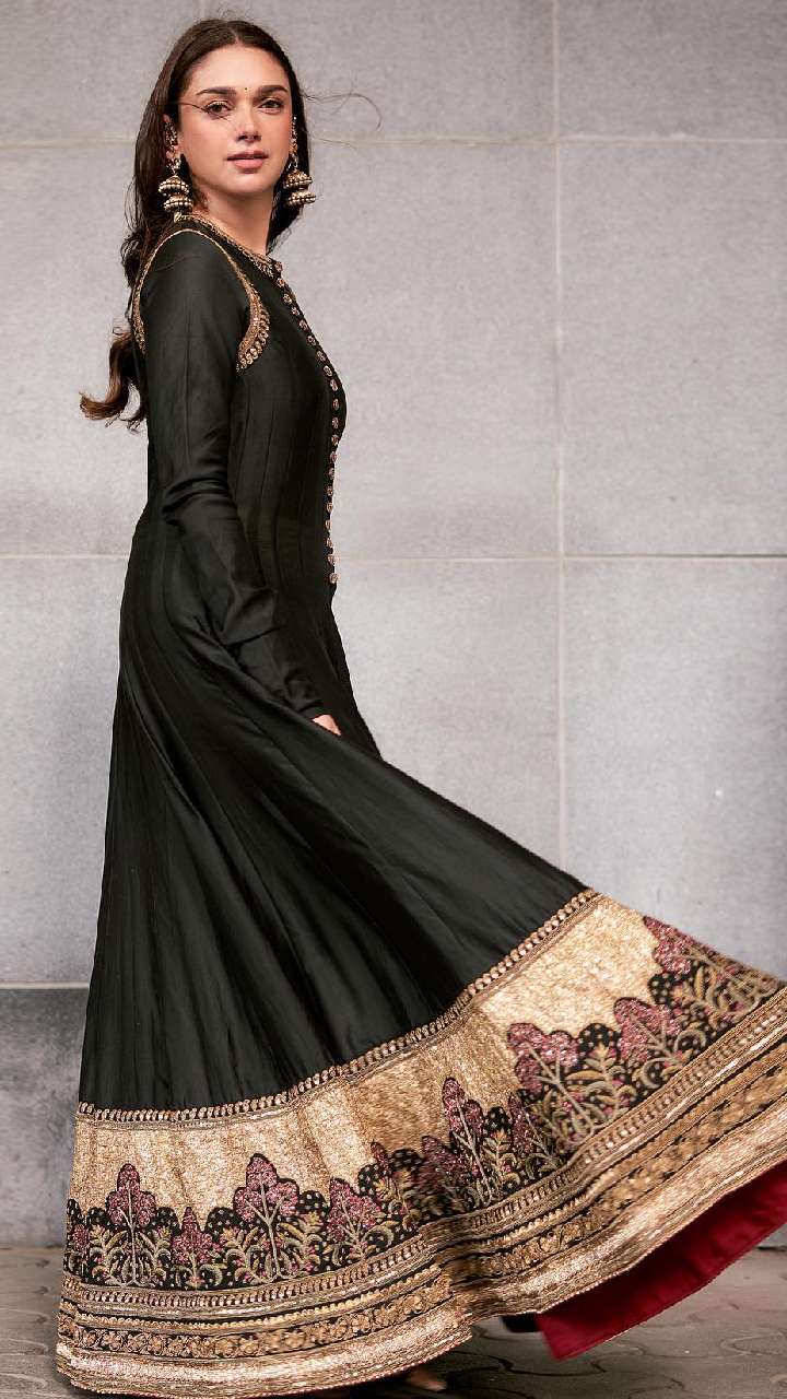 अदिति राव हैदरी इस ब्लैक कलर के अनारकली सूट में हुस्न की मल्लिका लग रहीं हैं। एक्ट्रेस का ये लुक गरबे में आप कैरी कर सकती हैं।