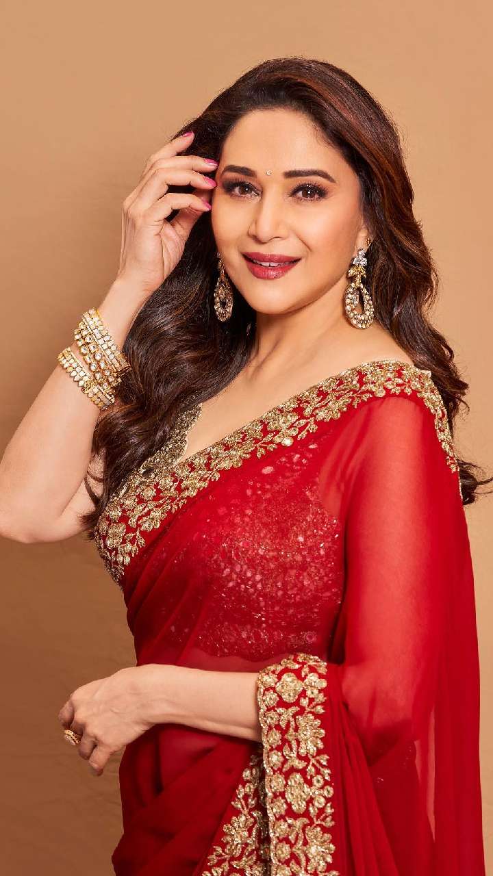माधुरी दीक्षित अपने लुक्स को लेकर काफी ज्यादा चर्चा में बनी रहती हैं। एक्ट्रेस की ये साड़ी शानदार लुक दे रही है।