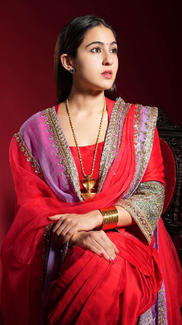 सारा अली खान का हर लुक काफी ज्यादा रॉयल होता है। रेड कलर के सूट में एक्ट्रेस का ये लुक शानदार है।