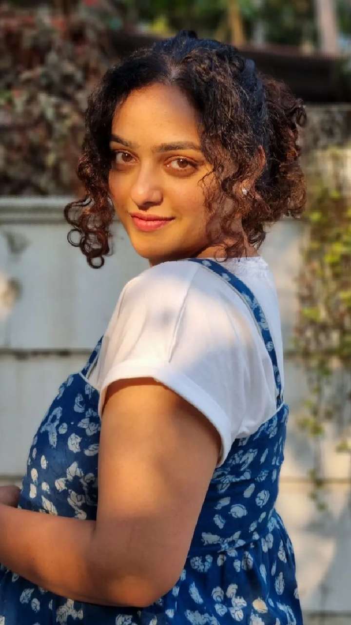 साउथ की एक्ट्रेस नित्या मेनन के भी कर्ली हेयर हैं। एक्ट्रेस का हर लुक को उनके बाल शानदार बना देते हैं।