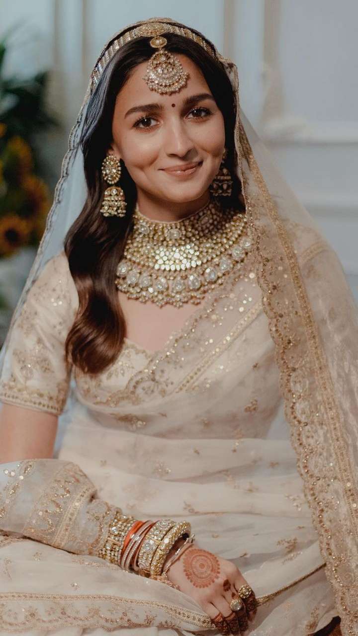 आलिया भट्ट ने भी शादी वाले दिन क्रीम कलर का जोड़ा पहना था।