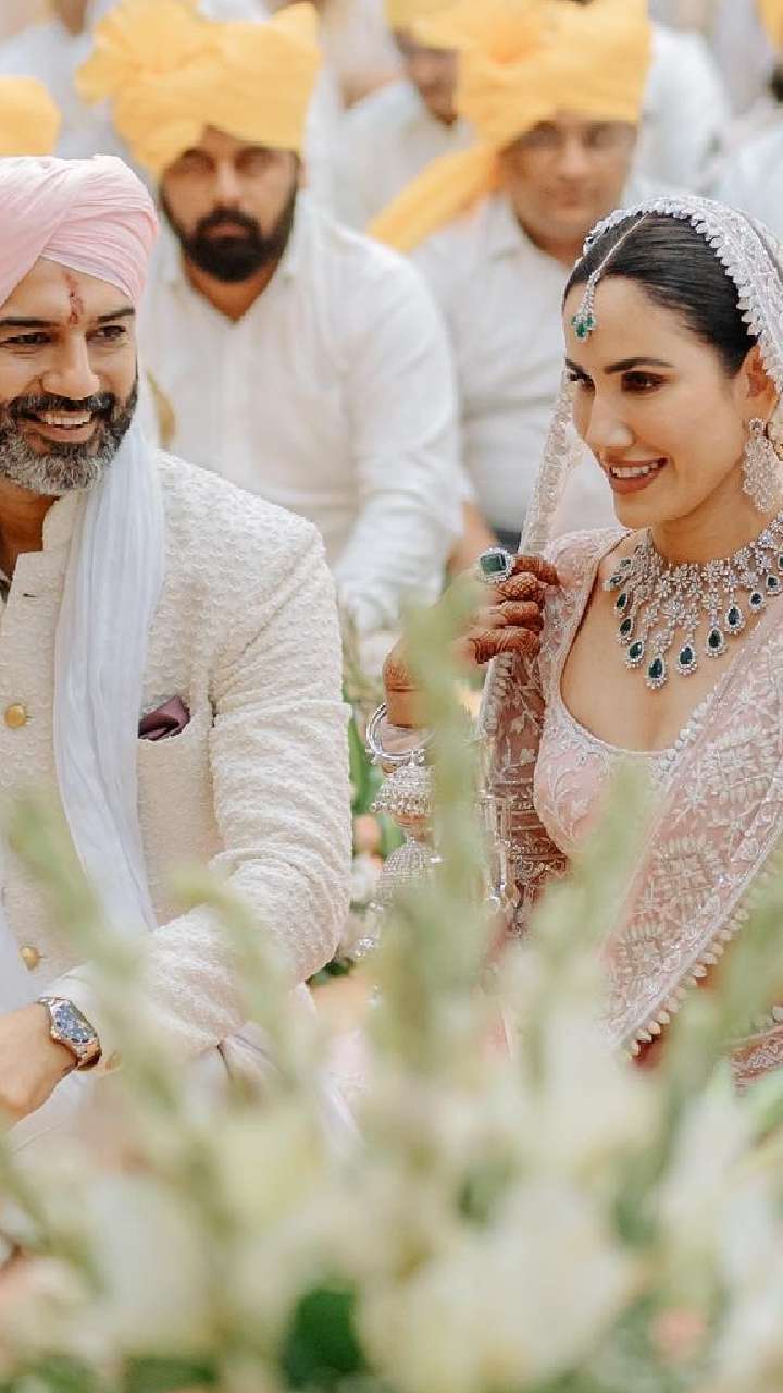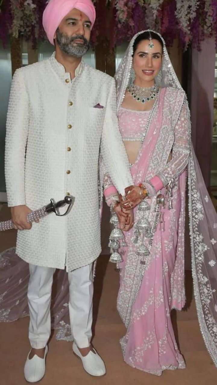 एक्ट्रेस ने अपनी शादी वाले दिन लहंगे की जगह पिंक साड़ी पहनी। जिसमें वो बेहद खूबसूरत नजर आई।