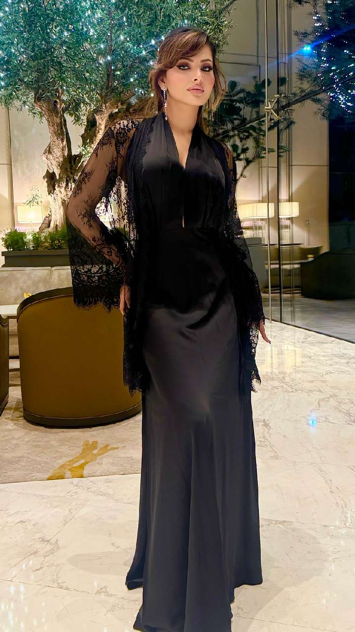 न्यू ईयर पार्टी के लिए सेसी आउटफिट की तलाश कर रही हैं, तो एक्ट्रेस का यह लुक एकदम बेस्ट है। उन्होंने ब्लैक कलर की थाई हाई स्लिट ड्रेस पहनी है, जो उनके लुक को हॉट बना रहा है।