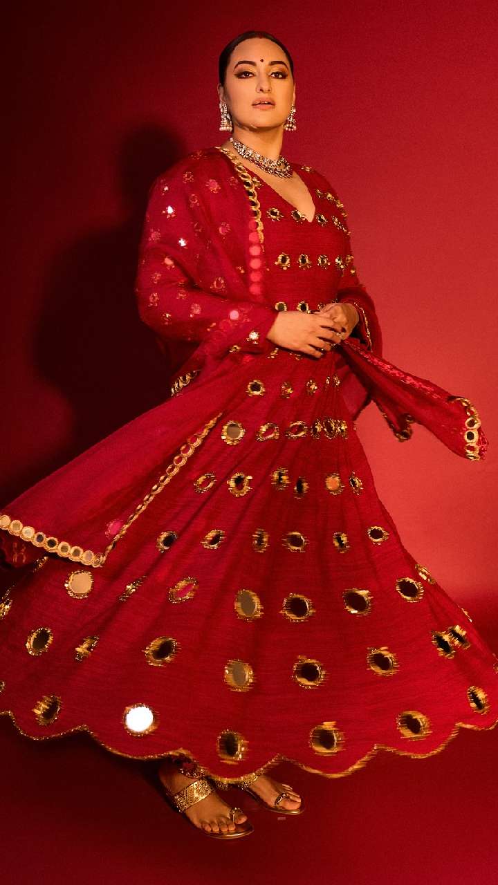 आप घर के किसी फंक्शन या पार्टी में ट्रेडिशनल लुक पाना चाहती हैं, तो सोनाक्षी सिन्हा की तरह ही रेड अनारकली सूट को ट्राई कर सकती हैं। ऐसे सूट आपके लुक पर चार चांद लगा देंगे।
