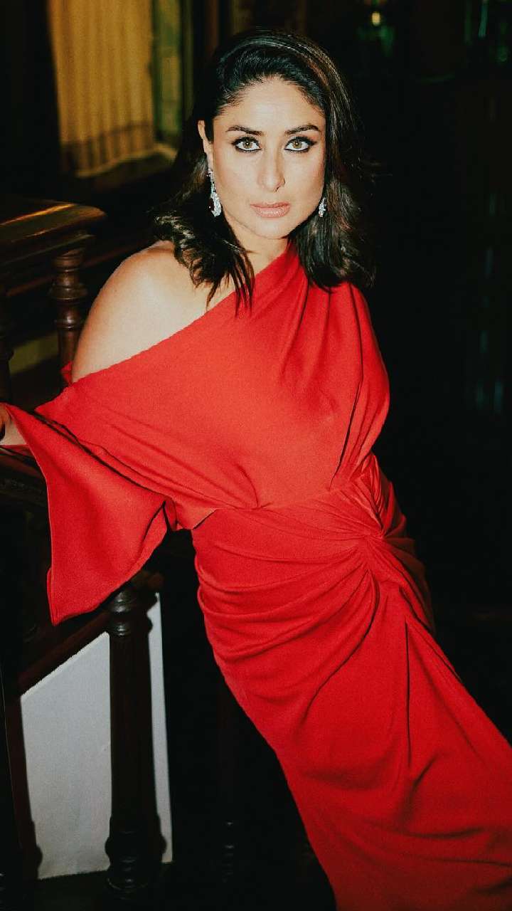 करीना कपूर खान रेड कलर की डाउन शोल्डर ड्रेस में बहुत हॉट लग रही हैं। इस तरह की ड्रेस आप नाईट पार्टी या कॉकटेल पार्टी में पहन सकती हैं।