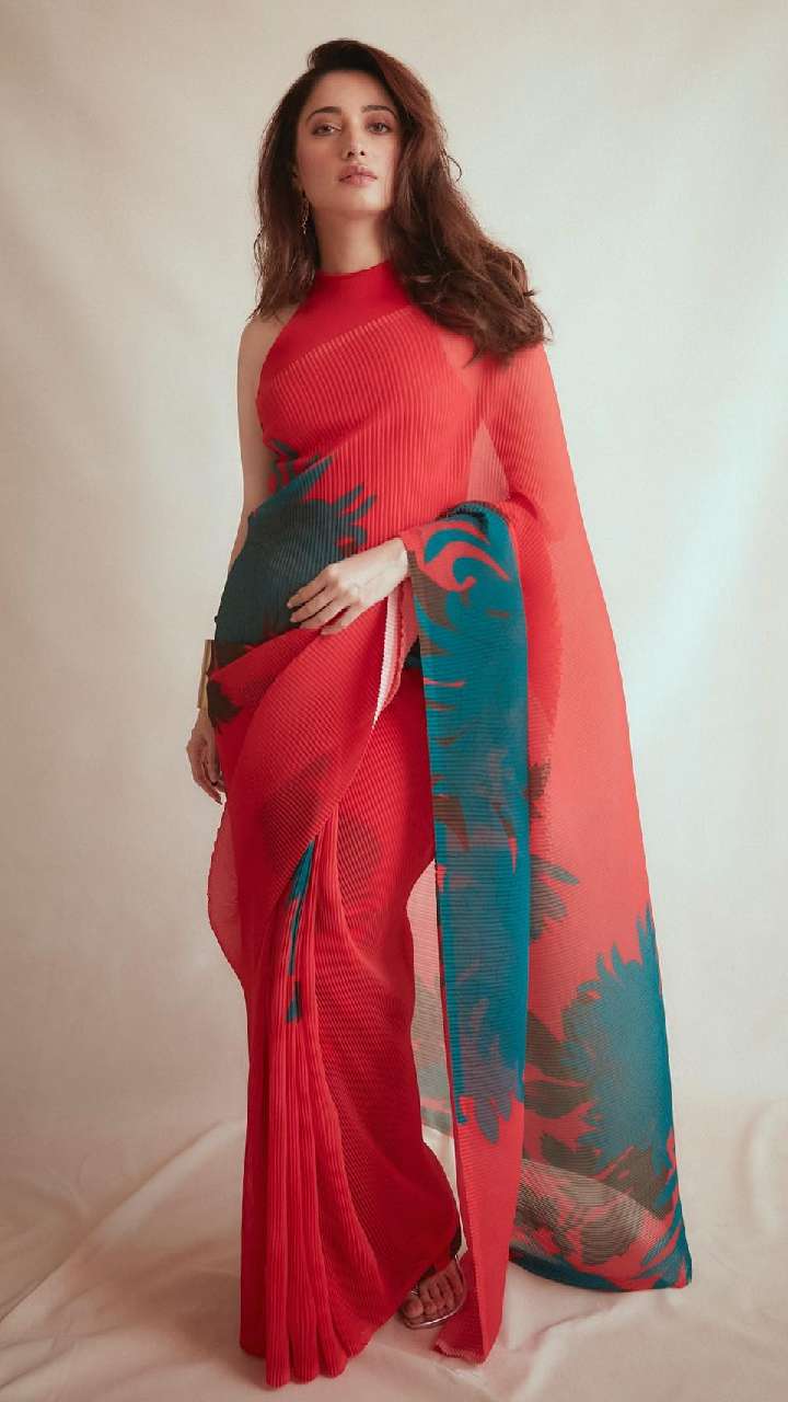 अगर आप वैलेंटाइन पार्टी में सिंपल और सोबर दिखना चाहती हैं, तो तमन्ना भाटिया के जैसी रेड कलर की साड़ी को स्टाइल करें। आप एक्ट्रेस की तरह हॉलटर नेक ब्लाउज पेयर करके लुक में चार चांद लगा सकती हैं।