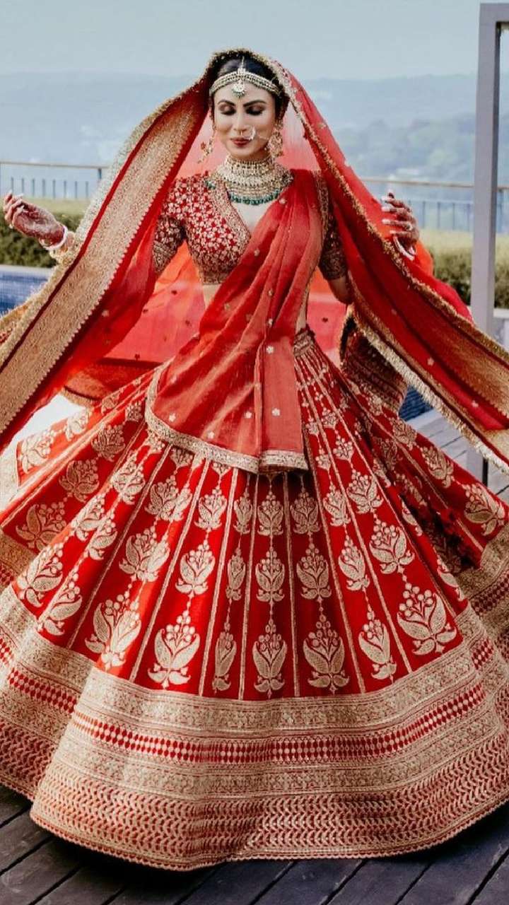 नागिन एक्ट्रेस मौनी रॉय ने अपनी शादी के दिन को लाल कलर के लहंगे से और खास बनाया था। एक्ट्रेस का ये लहंगा करीब 60 हजार का था।