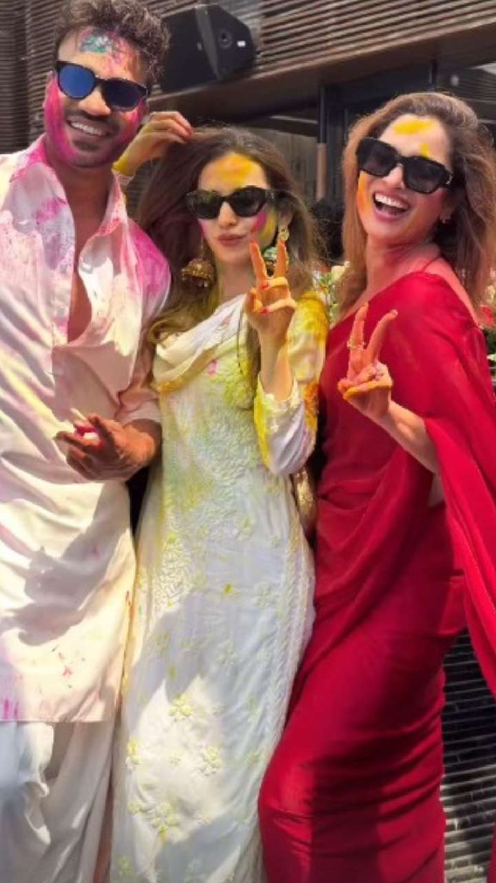 अंकिता लोखंडे अपने पति विक्की जैन के साथ रंग में रंगी नजर आईं। साथ ही, दोनों कपल अपने करीबी दोस्तों और परिवार के साथ जमकर डांस करते दिखाई दिए।