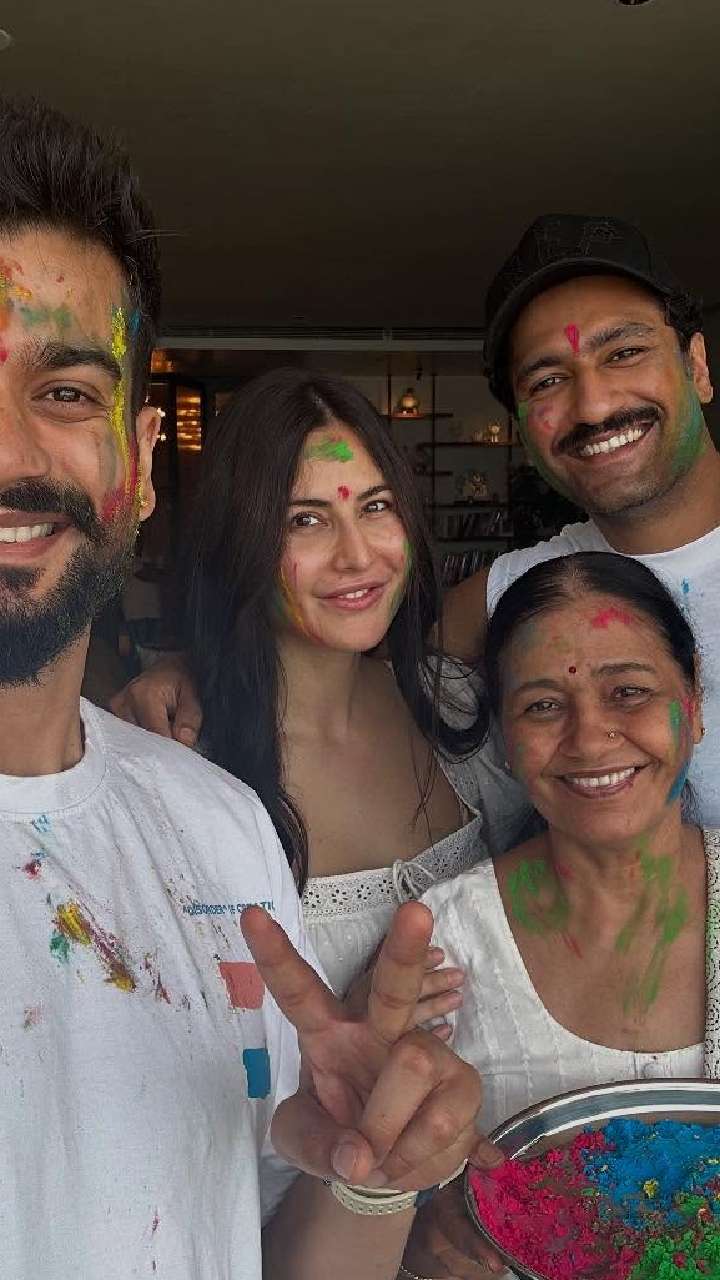 कटरीना कैफ ने अपने पति विक्की कौशल और पूरे ससुराल वालों के साथ होली मनाई। एक्ट्रेस ने रंगों की मस्ती की तस्वीरें व वीडियो सोशल मीडिया पर शेयर की।