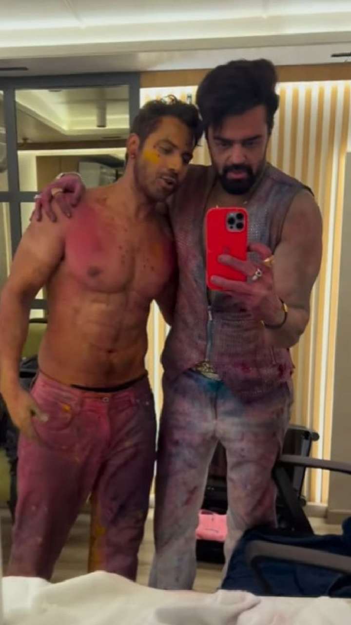 इस साल वरुण धवन होली फिल्म की शूटिंग के बीच मनीष पॉल के साथ होली मनाई। मनीष और वरुण दोनों ही रंगों की मस्ती में झूमते हुई नजर आए।