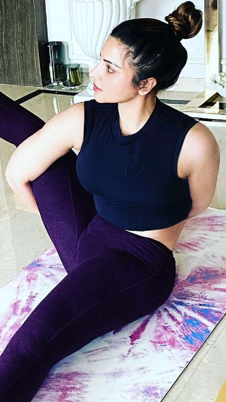 शमा सिकंदर भी अपने घर पर योग करते नजर आई।