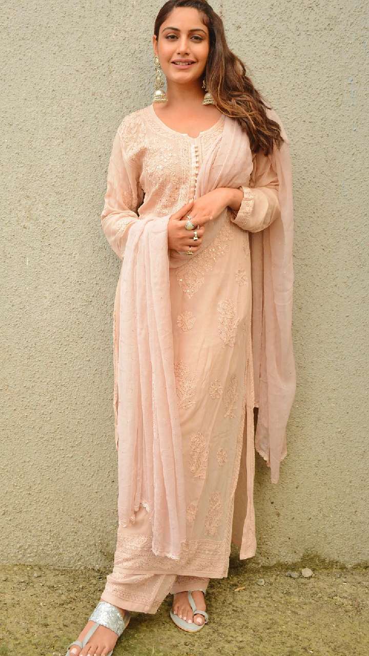 इस समर सीजन आप एक्ट्रेस के लाइट कलर चिकनकारी प्लाजो सूट से आइडिया ले सकती हैं।