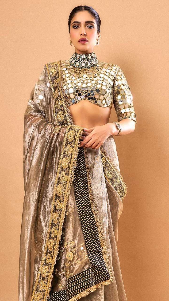 अगर शादी में सिंपल साड़ी पहन रही हैं, तो उसके साथ मिरर वर्क ब्लाउज कैरी करें। यह आपको रॉयल और क्लासी लुक देगा।