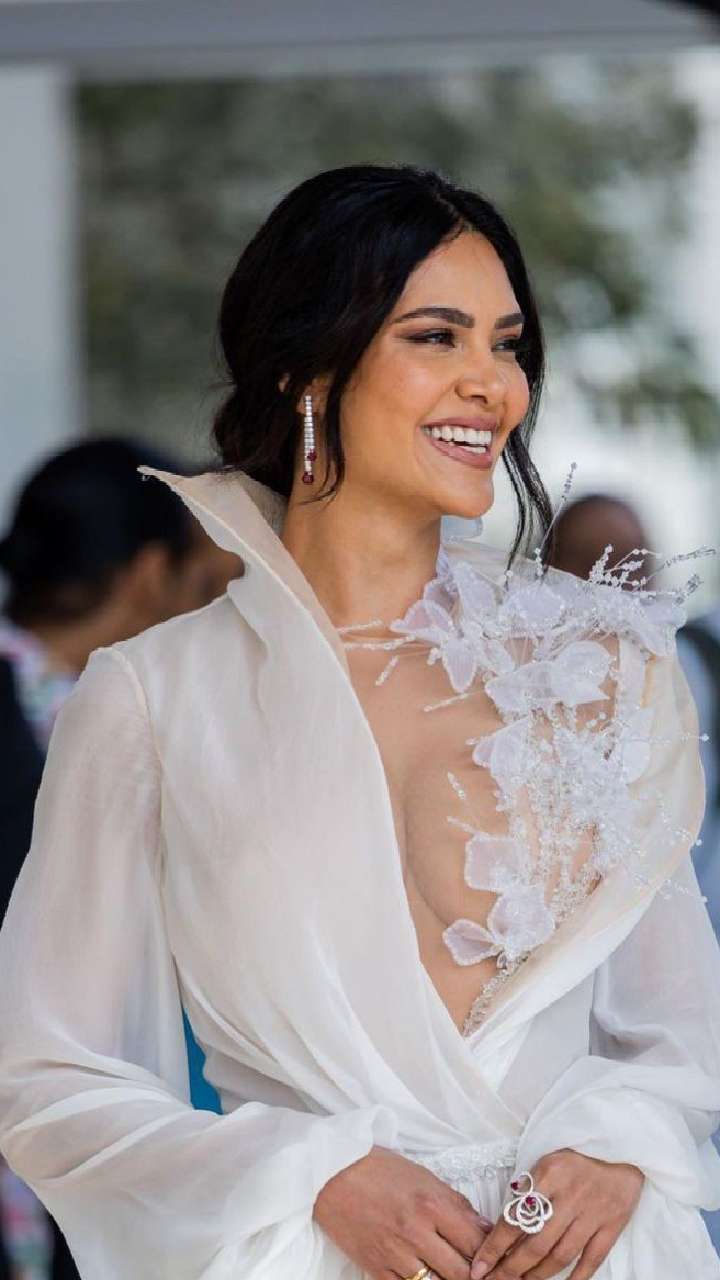 कांस 2023 में ईशा गुप्ता ने व्हाइट कलर की हाई थाई स्लिट ड्रेस कैरी की थी, जिसमें वो बेहद हॉट लग रहीं थी।