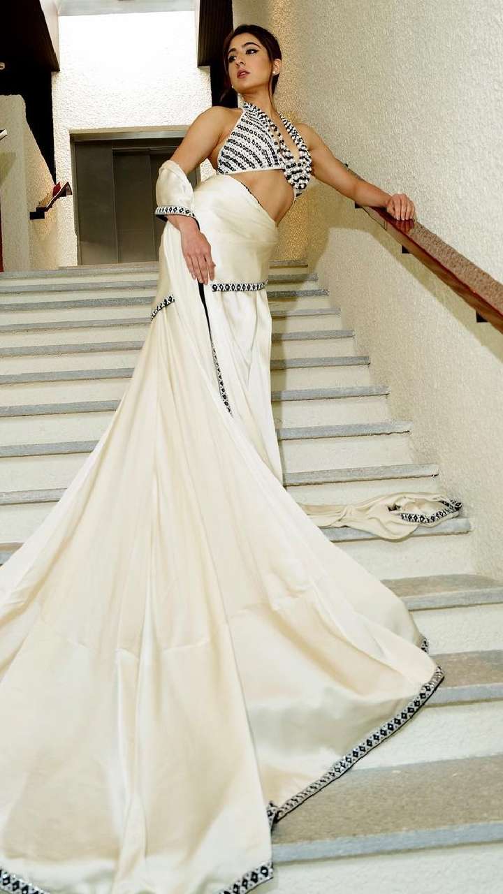 हाल में अपने इंडियन लुक में सबका दिल जीतने का के बाद सारा व्हाइट कलर की इंडो वेस्टर्न ड्रेस में बवाल मचा दिया है।