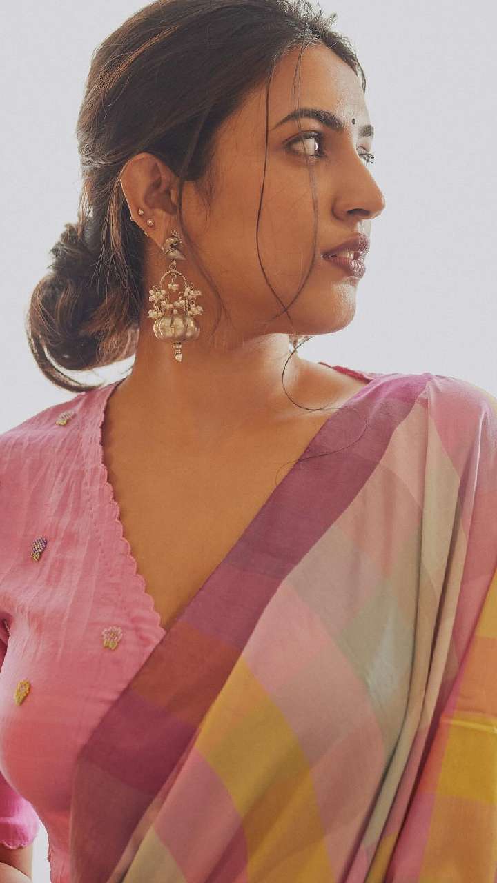 एक्ट्रेस का यह ब्लाउज देखने में सिंपल लुक दे रहा है, परंतु यह साड़ी को काफी अट्रैक्टिव बना रहा हैं।