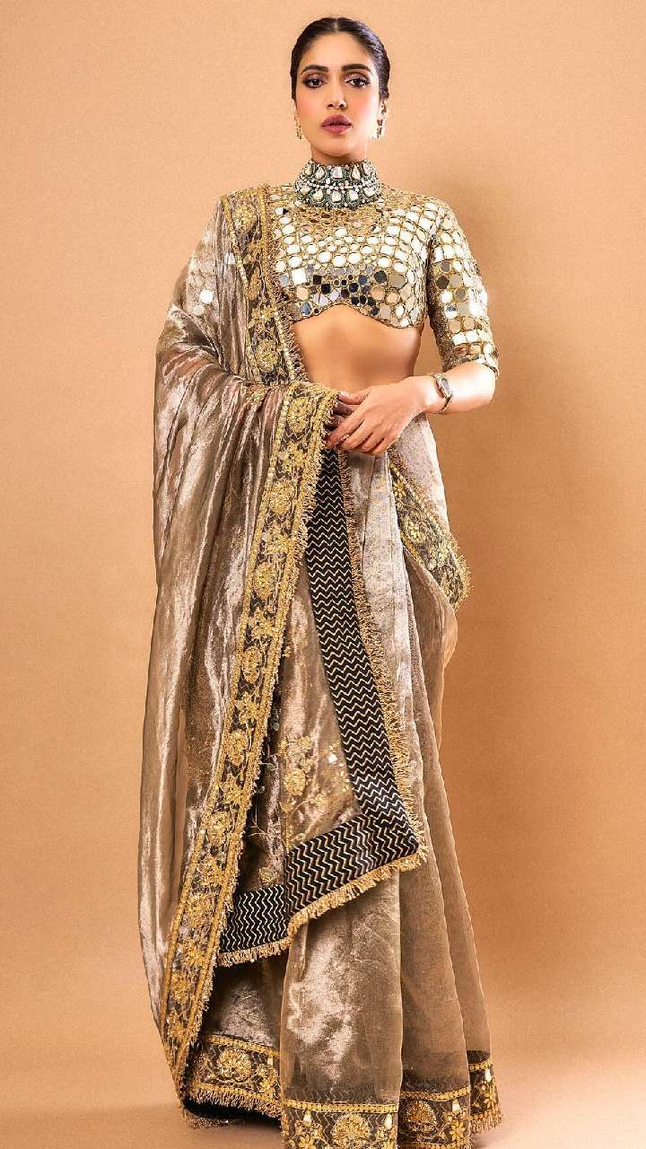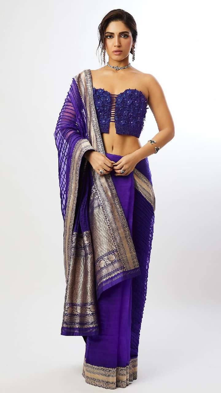 अगर आप छठ पर मॉडर्न और स्टाइलिश लुक पाना चाहती हैं, तो एक्ट्रेस की तरह सीधे पल्लू साड़ी के साथ ऑफ शोल्डर ब्लाउज पहनें। इसमें आप काफी ब्यूटीफुल नजर आएंगी।