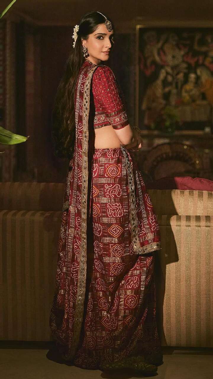 रेड कलर की बांधनी साड़ी को एक्ट्रेस ने सीधे पल्लू स्टाइल में कैरी की है। आप भी इस तरह की साड़ी को छठ पूजा पर पहनकर खूबसूरत लग सकती हैं।