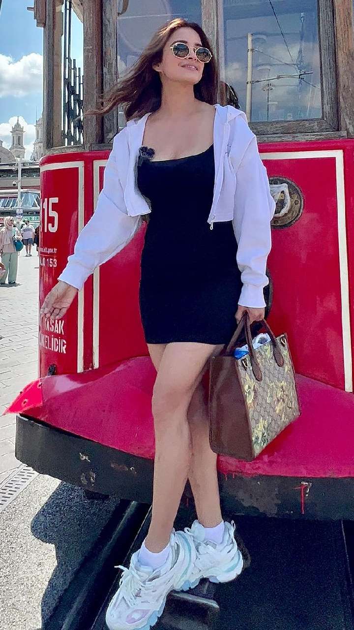 ब्लैक कलर की मिनी ड्रेस और क्रॉप जैकेट में एक्ट्रेस बेहद खूबसूरत और स्टनिंग लग रही हैं।