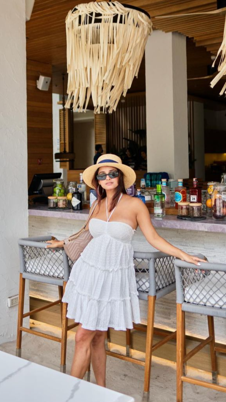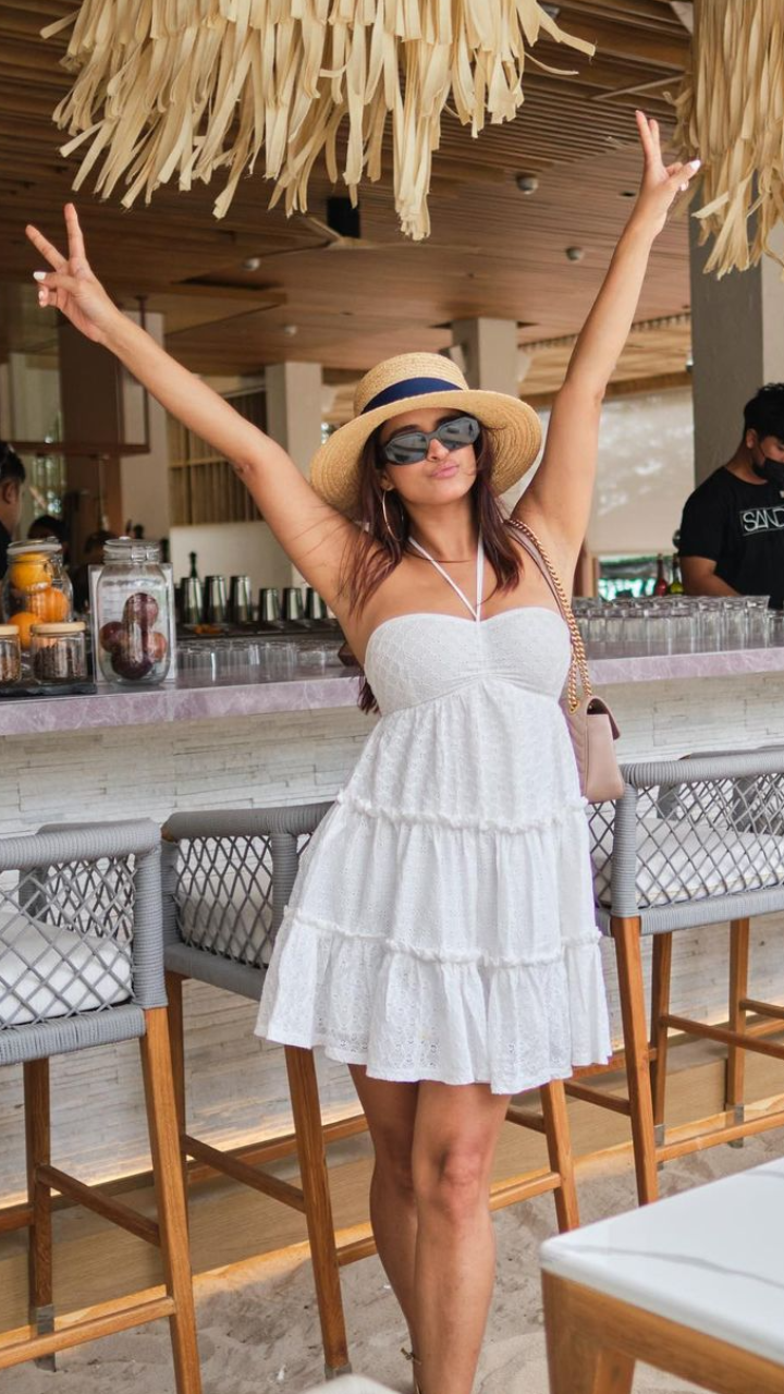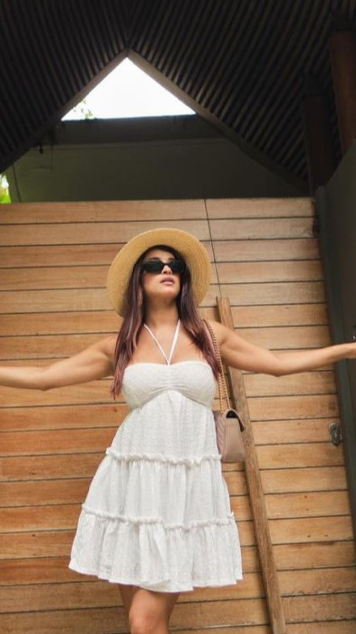 वेकेशन में चेतना ने व्हाइट कलर की मिनी ड्रेस पहनी हुई है जिसमें वो बेहद हॉट लग रही हैं।
