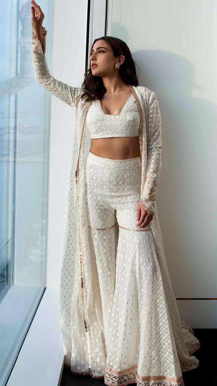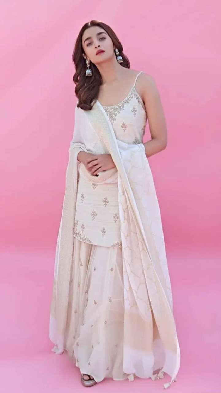 अगर आपको व्हाइट कलर कैरी करना पसंद है तो आप आलिया भट्ट की तरह ही व्हाइट शरारा कैरी कर सकती हैं।