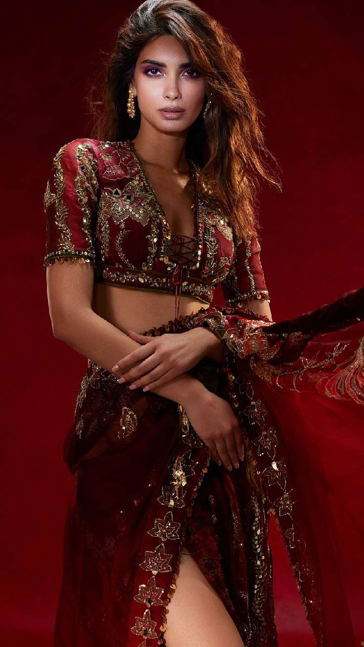 यंग गर्ल्स शादी में रॉयल और क्लासी लुक के लिए एक्ट्रेस के इस साड़ी स्टाइल लहंगे को कॉपी कर सकती हैं। आप लुक को बेहतर बनाने के लिए डिजाइनर ब्लेजर और डार्क स्मोकी आई मेकअप ट्राई कर सकती हैं।