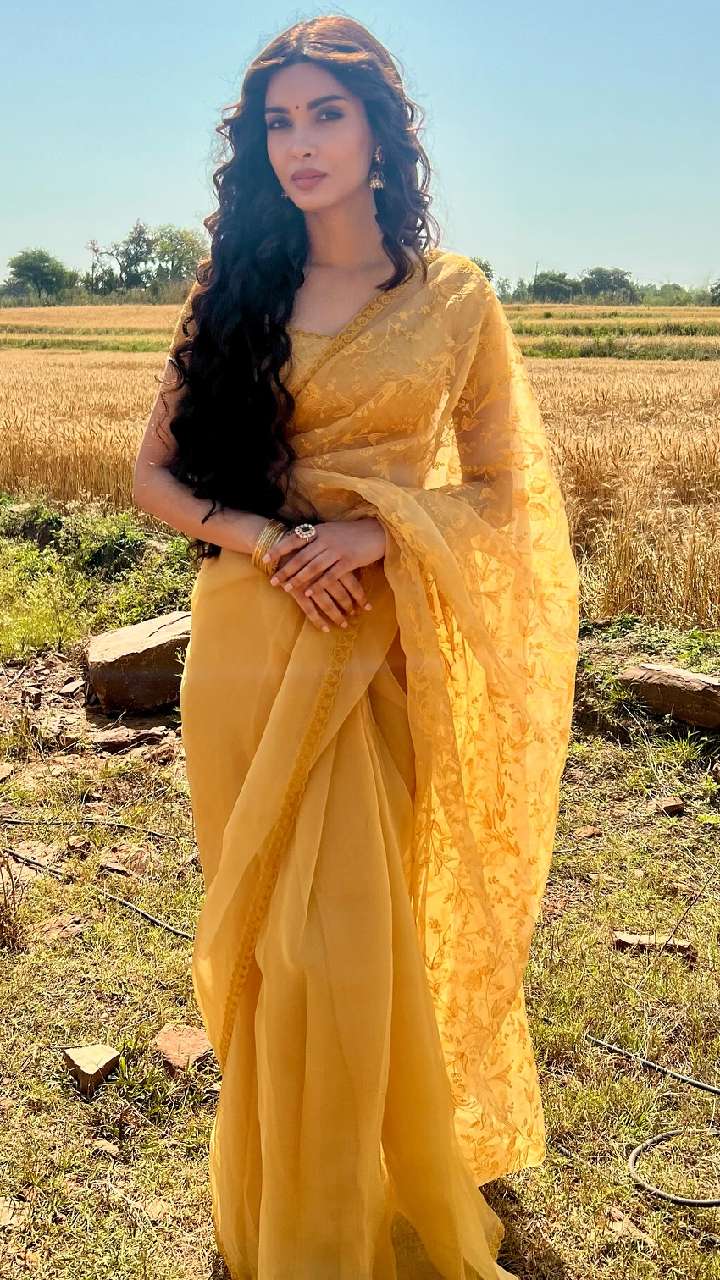 एक्ट्रेस ने कर्ली हेयर स्टाइल के साथ इस ब्लू कलर की सिंपल साड़ी को स्टाइल किया हैं। घर की पूजा या फंक्शन में न्युड मेकअप के साथ एक्ट्रेस की साड़ी को पहन सकती हैं।