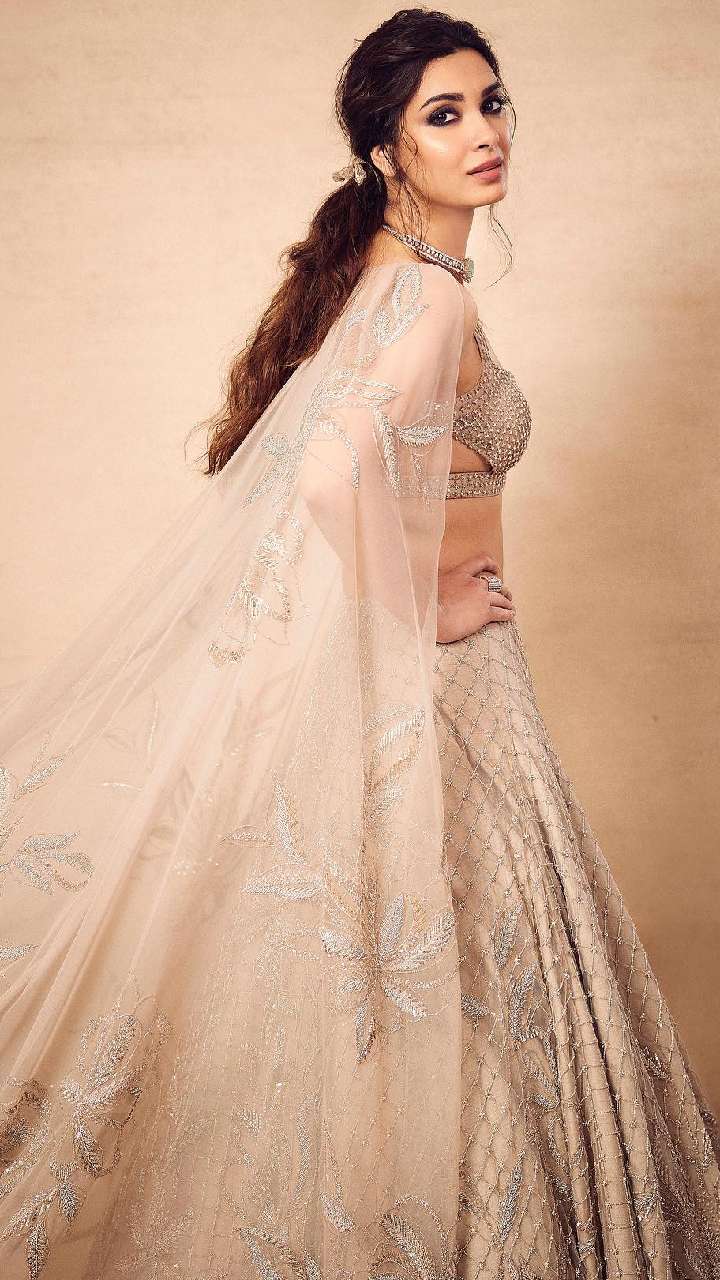 टाइट बन या वेवी हेयर स्टाइल के साथ आप एक्ट्रेस के स्टाइलिश लहंगे को शादी में पहन सकती हैं। यह लहंगा रॉयल लुक देने के साथ आपको महफिल की स्पोर्ट लाइट बनाएगा।