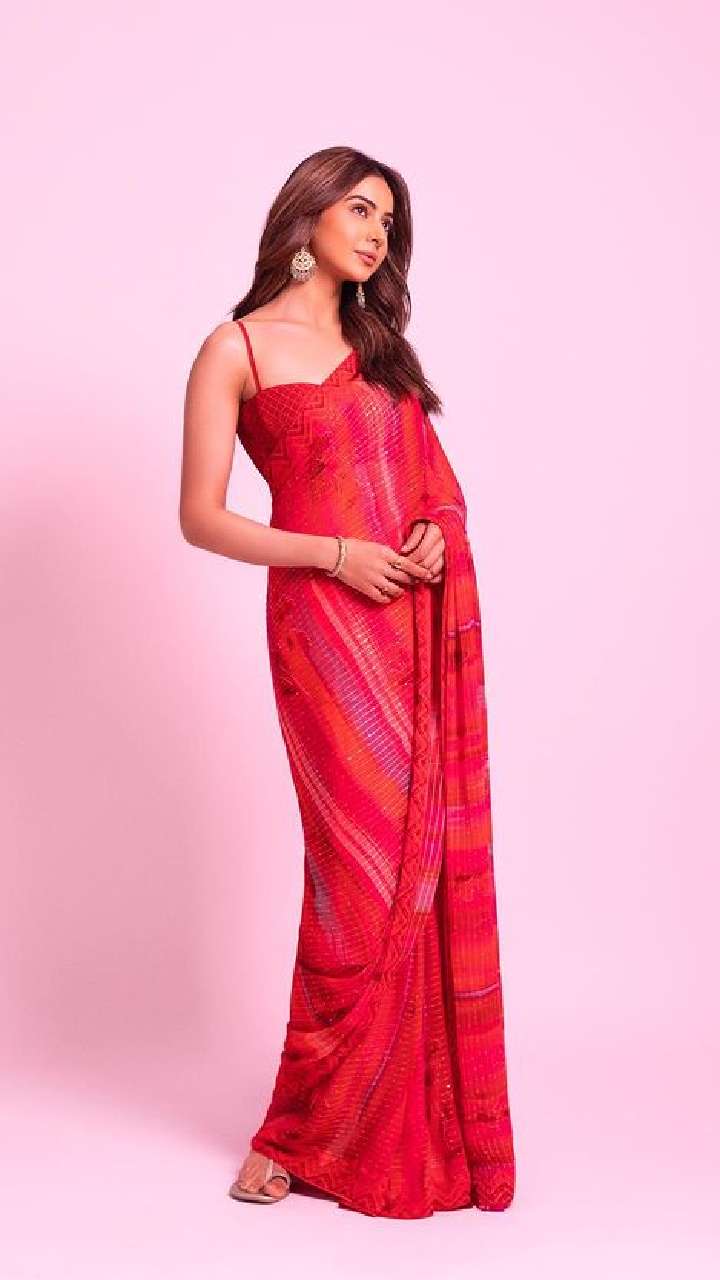 सोशल मीडिया पर रकुल प्रीत सिंह ने रेड साड़ी में ब्यूटीफुल फोटोज शेयर की हैं।