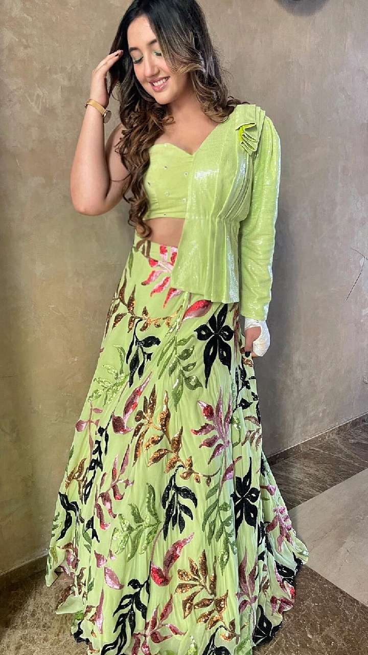 इस लाइट ग्रीन कलर के स्कर्ट विद लांग टॉप में डीवा एकदम वेडिंग गेस्ट लुक दे रही हैं। एक्ट्रेस का वन साइड स्लीव्स डिजाइन काफी यूनिक है।
