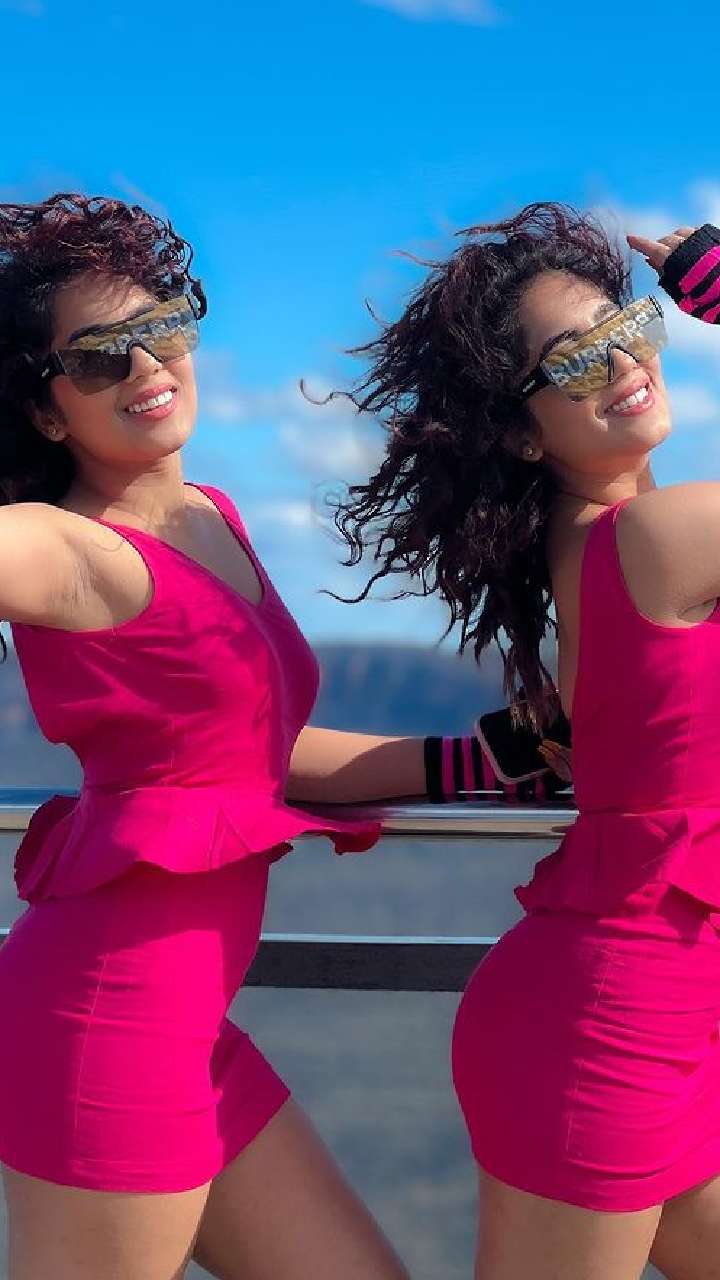सुरभि - समृद्धि ने इस पिंक कलर के स्कर्ट टॉप संग लॉन्ग ब्लैक बूट से अपना ओवरऑल लुक कंप्लीट किया है।