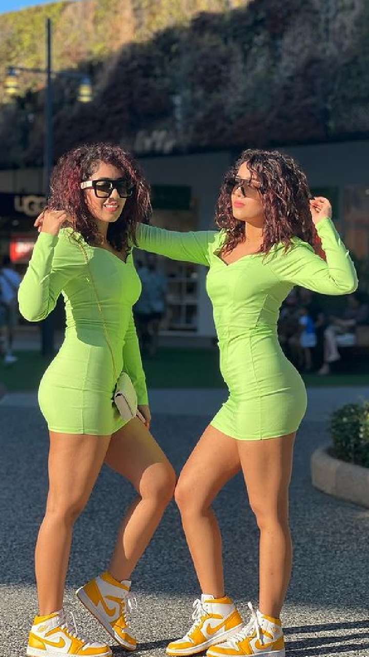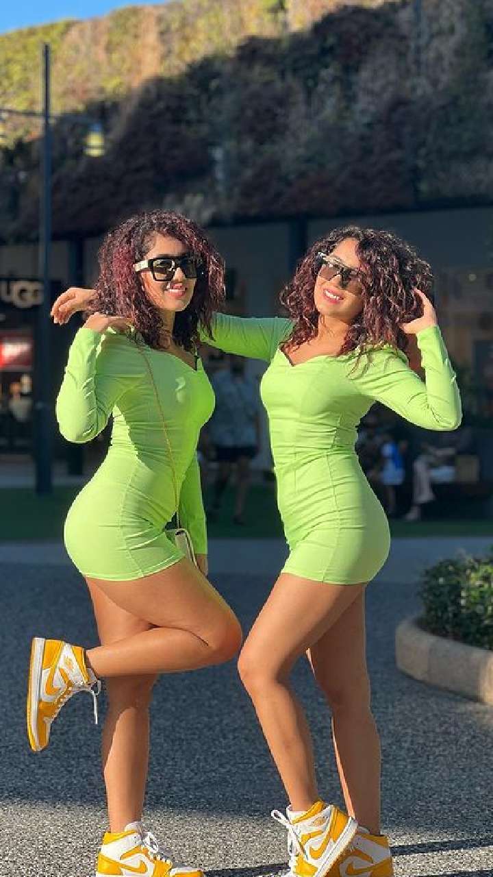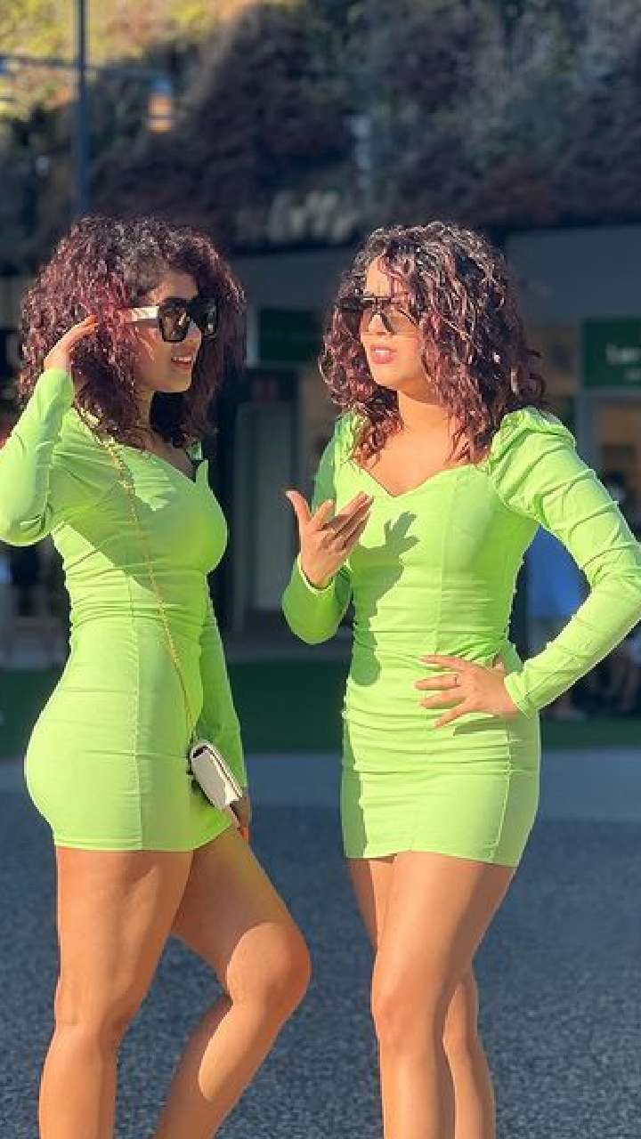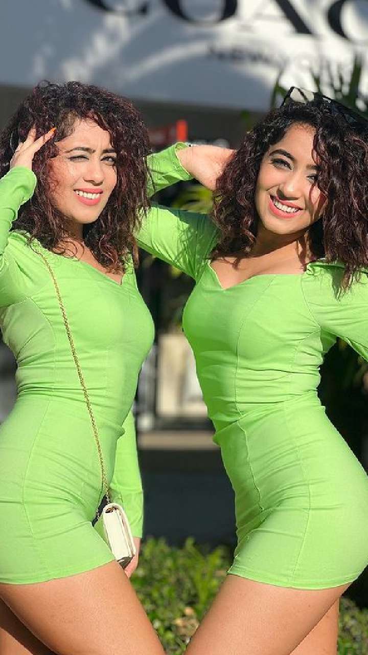 ट्विन सिस्टर चिंकी मिंकी ने ग्रीन शॉर्ट को कैरी किया हैं।