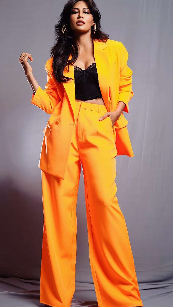 चित्रांगदा इस येलो और ब्लैक कलर के बॉसी लुक में काफी हॉट लग रही हैं। आप भी इस लुक को ऑफिस पार्टीज में ट्राई कर सकती हैं।