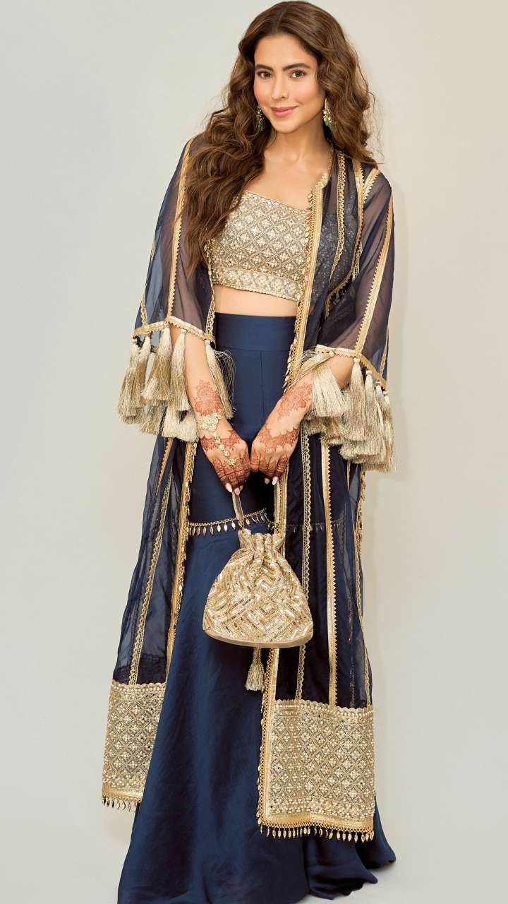 मेहफिल की स्पोर्ट लाइट बनने के लिए आप डार्क और बोल्ड मेकअप के साथ एक्ट्रेस के इस लहंगे को स्टाइल कर सकती हैं। साथ ही, लुक को अट्रैक्टिव बनाने के लिए आप टाइट बन ट्राई करें।