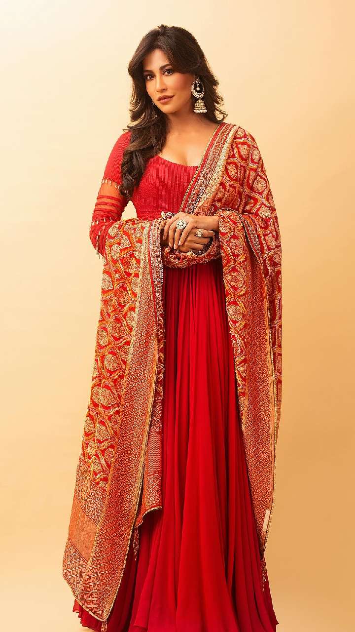 आप चाहें तो चित्रांगदा सिंह के इस सूट को भी कॉपी कर सकती हैं। रेड प्लेन सूट के साथ एक्ट्रेस ने हैवी वर्क दुपट्टा पेयर किया है।