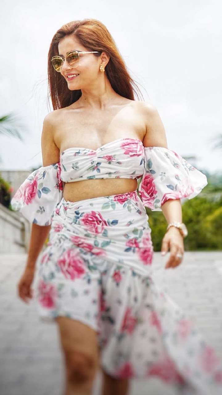 गर्मी में आप रूबीना दिलैक की तरह ही प्रिंटेड ड्रेस को पेयर कर सकती हैं। रूबीना दिलैक का ये लुक काफी हॉट है।