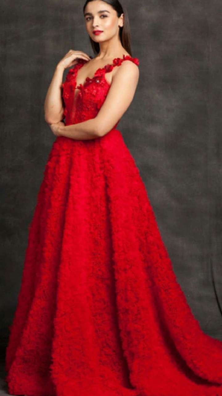 आलिया भट्ट इस रेड कलर के फ्लेयर गाउन में एकदम बार्बी डॉल लग रही हैं। आप इस लुक से भी आइडिया ले सकती हैं।