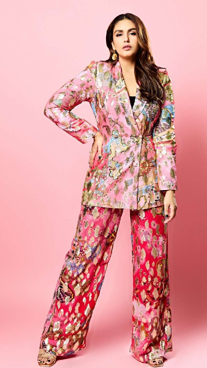 पिंक कलर के प्रिंटेड फॉर्मल लुक में हुमा बेहद खूबसूरत लग रही हैं। ऑफिस में बॉसी पर्सनैलिटी के लिए आप इस लुक को कर्ली हेयर स्टाइल के साथ पहन सकती हैं।