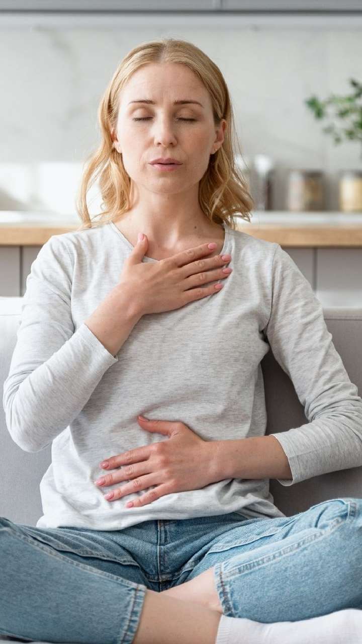 तनाव बढ़ने पर सांस फूल सकती है। मेडिटेशन, धीमी सांसें और शांत माहौल इसमें सहायक होते हैं।