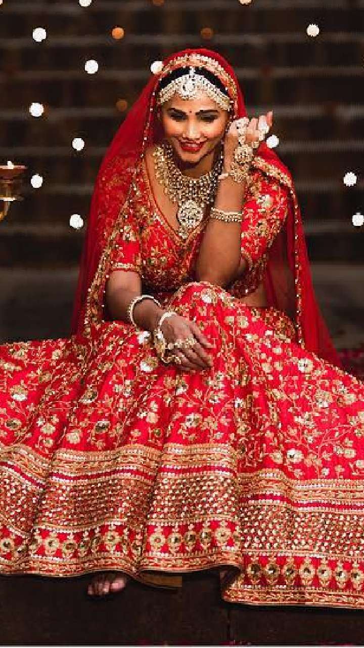 करवाचौथ पर आप अपनी शादी का रेड गोल्डन वर्क लहंगा हैवी वर्क ब्लाउज के साथ कैरी करके अपना नूर बढ़ा सकती हैं। इसमें सास भी आपकी बलाइयां लेगी।