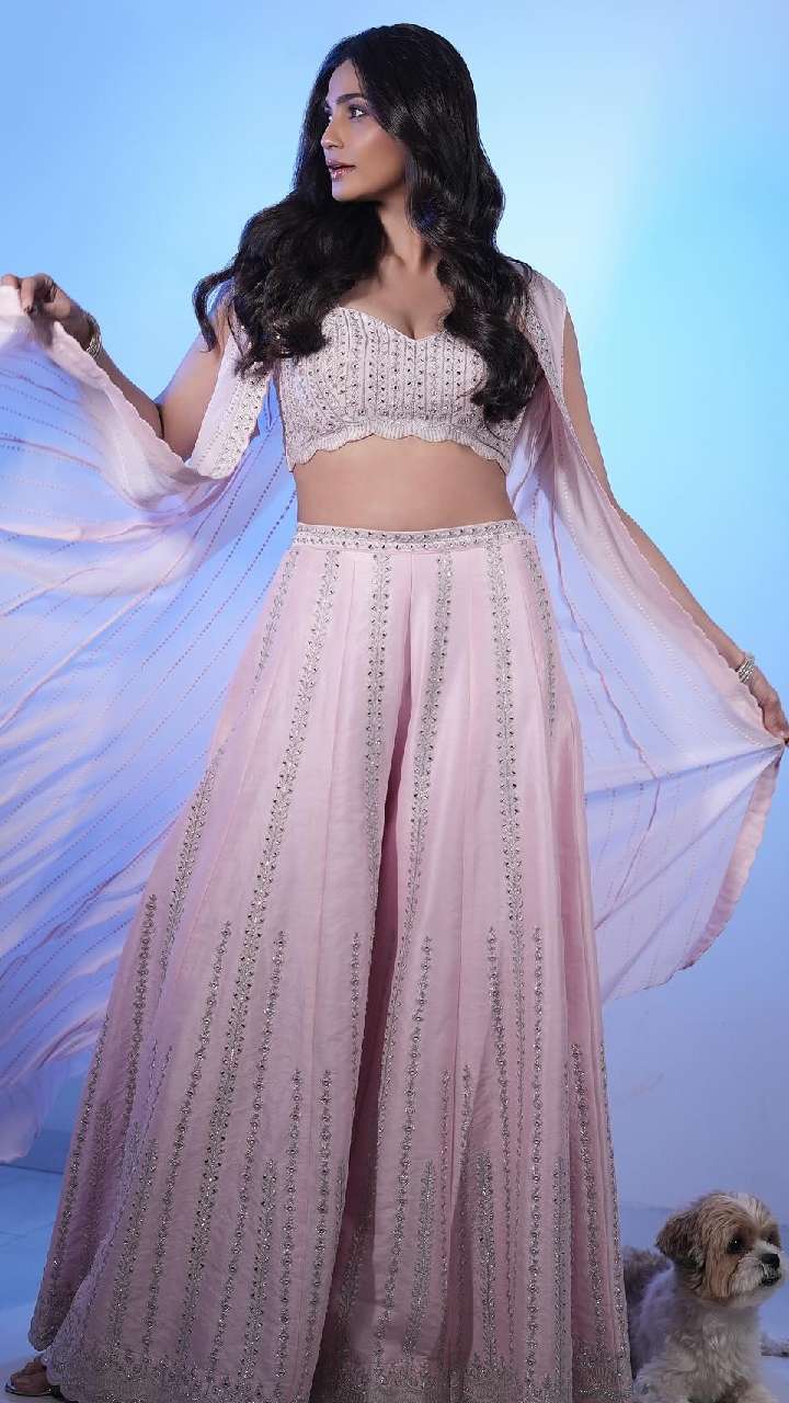 आप भी शादी में लाइमलाइट बटोरना चाहती हैं, तो डेजी की तरह क्रॉप टॉप और प्लाजो कैरी कर सकती हैं। लुक को कंप्लीट करने के लिए आप भी श्रग पेयर किया है।