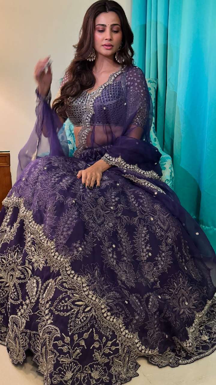 आप भी अपने देवर की शादी में सबसे अलग लगना चाहती हैं, तो एक्ट्रेस के इस लुक को कॉपी करना न भूलें। उन्होंने पर्पल कलर का एंब्रॉयडरी लहंगा पहना है, जिसमें वह काफी गॉर्जयस लग रही हैं।