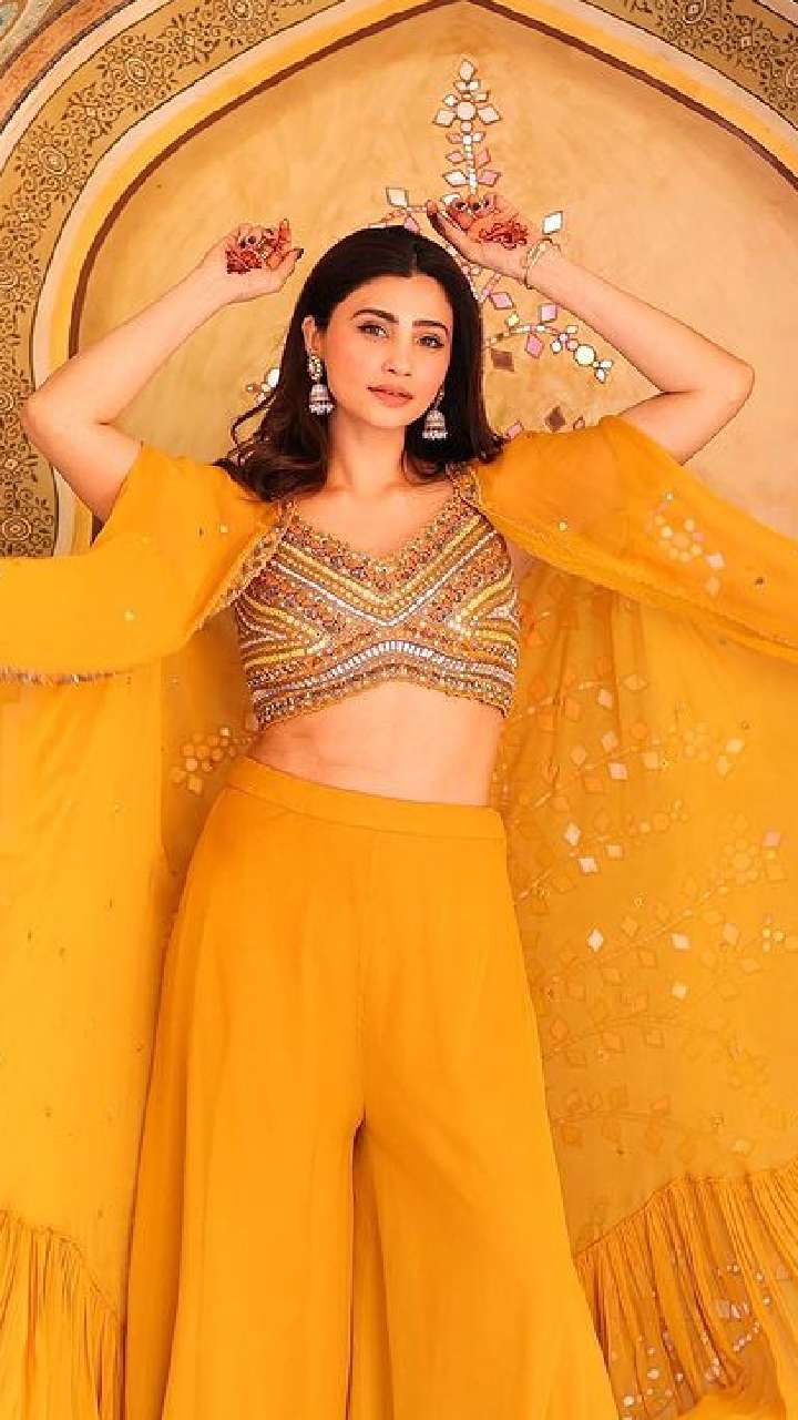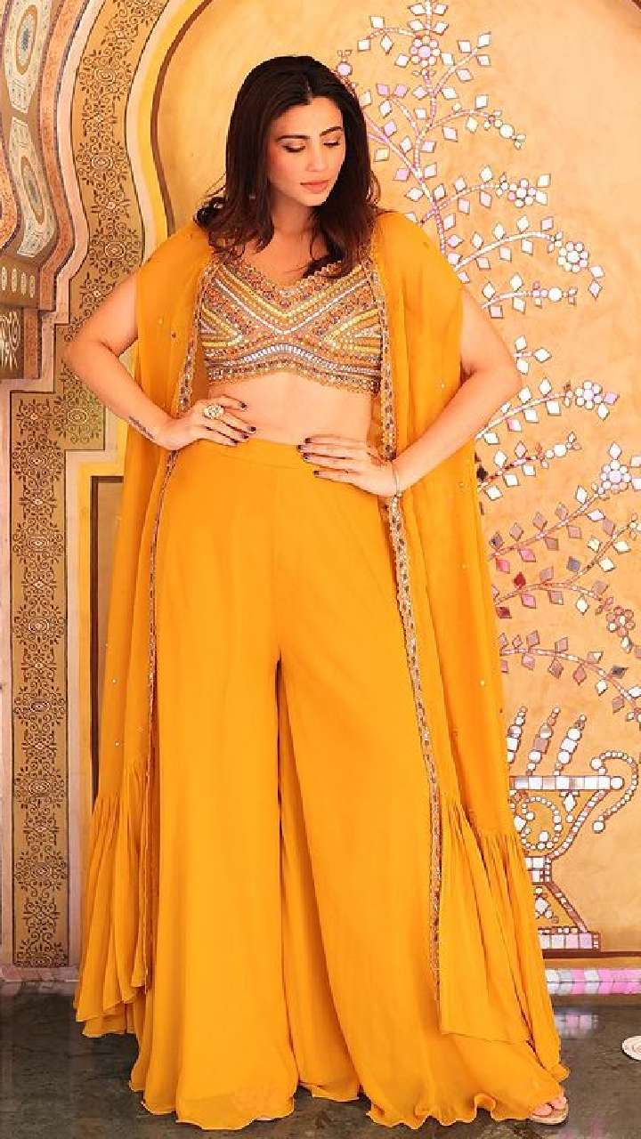 वही हल्दी लुक के लिए आप एक्ट्रेस की ये इंडो वेस्टर्न ड्रेस ट्राय कर सकते हो।