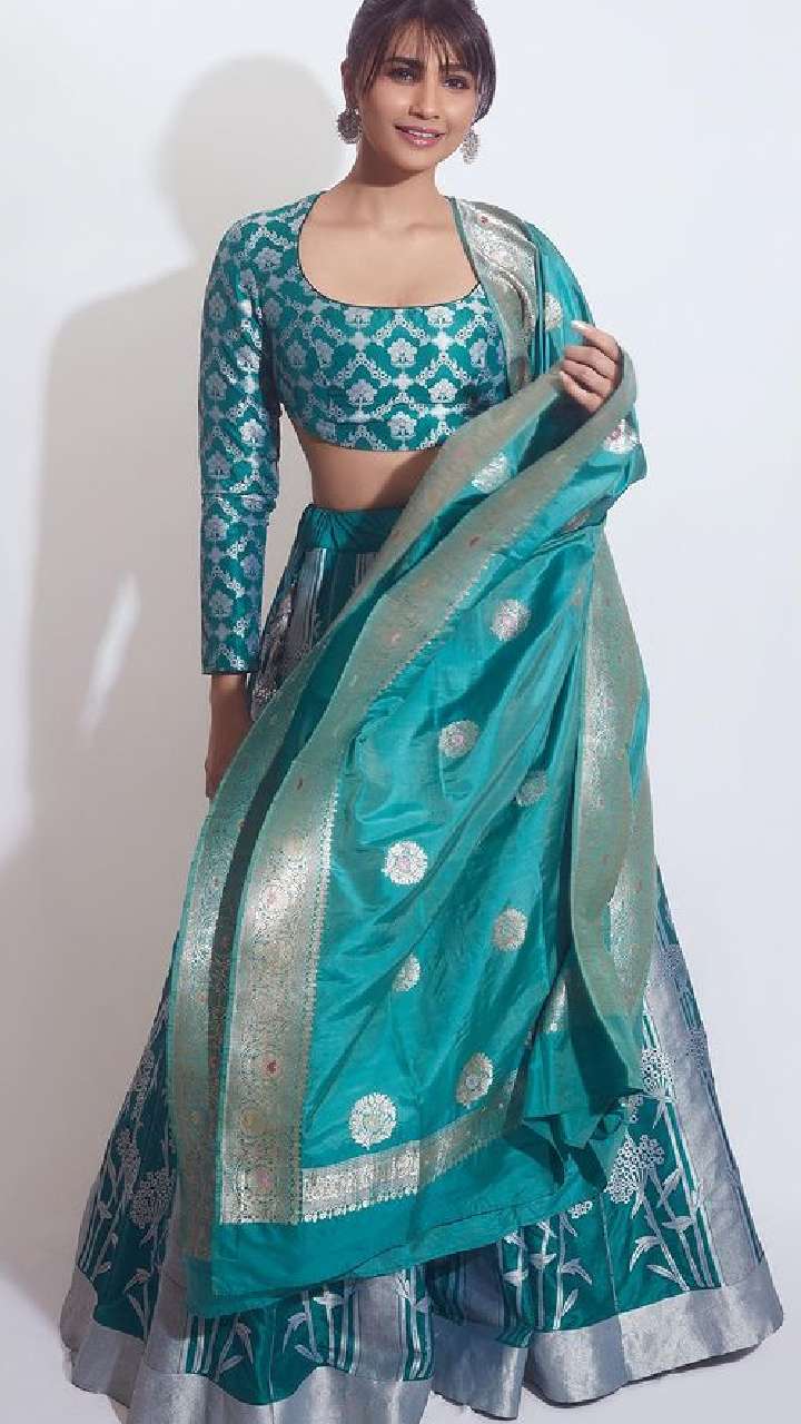 शादी में अभिनेत्री का ये डबल शेड लहंगा संग स्टाइलिश चोली आपको बेहद खूबसूरत लुक देगा।