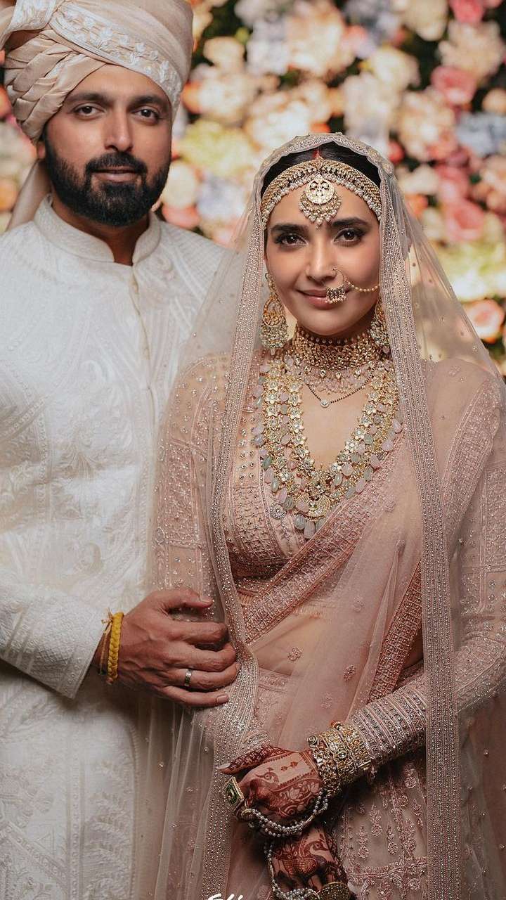 फेमस टीवी अदाकारा करिश्मा तन्ना का भी लाइट कलर के लहंगे में ब्राइडल लुक शानदार था।